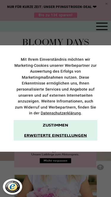 85%Versende jetzt frische, liebevoll arrangierte Blumen mit BLOOMY DAYS – ausgezeichnete Qualität & Frischegarantie für unvergessliche Momente.