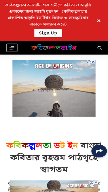 93%বাংলা কবিতা-র (Bengali Poems) জনপ্রিয় ওয়েব পোর্টাল, বাংলা সাহিত্যের খ্যাতিমান কবি ও বিখ্যাত কবিতা-র (Bangla Kobita Lyrics) বিপুল সংগ্রহ।
