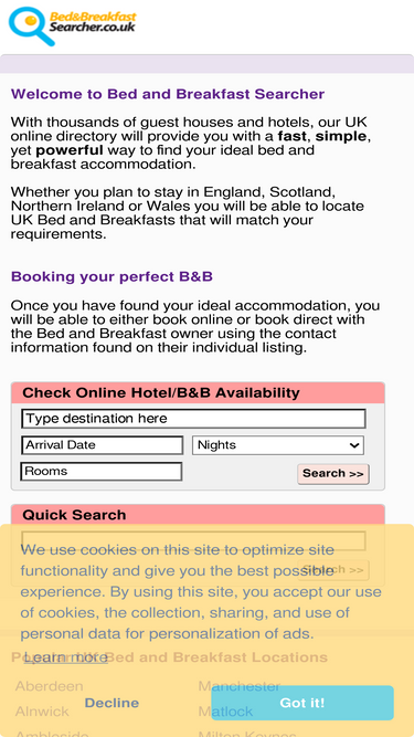 83%UK and Irelands Fastest Growing Accommodation Directory ,find the Best UK Holidays here , Bed and Breakfast, B and B ,Guest House ,Hotel and Self Catering in England Ireland Scotland and Wales.