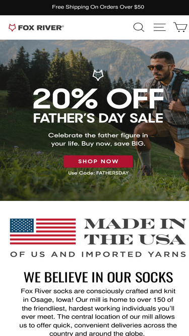 87%Go Further in Fox River's premium outdoor, hiking, boot, work, ski, military and performance socks. Proudly made in the USA.