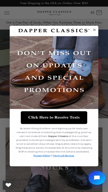 98%Dapper Classics socks are expertly knitted in North Carolina at a family-owned mill. Every sock is made with style and comfort in mind, guaranteeing that you look and feel your best. Make a statement in these patriotic dress socks. The Dapper Classics philosophy is simple: “Dapper is in the Details". Those details include material that is breathable in every season, a design that ensures your socks stay up, and a linked-toe for a smooth fit and added durability. DetailsKnitted in the USAMid-Calf Fit200 Needle CountLinked Toe70% Mercerized Cotton29% Nylon1% SpandexFits Sizes 8 – 12