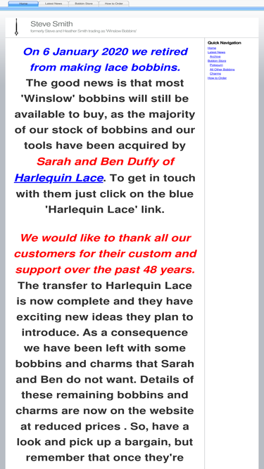 100%winslow bobbins make turned wood lace bobbins - specialising in basic, decorated, commemorative and personalised bobbins which are tools for making hand made lace.