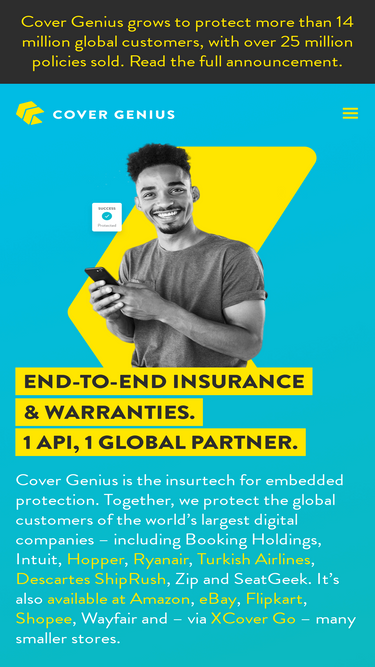 Privacy Policy Last updated: 08-01-2025At Cover Genius (collectively, “Cover Genius”, “we”, “our” and “ours”), we take our customers’ (collectively “you”, “yours” and “users”) personal information and your trust very seriously. We strive to ensure the personal information you provide to us when you visit our website or use our services is secure and confidential at