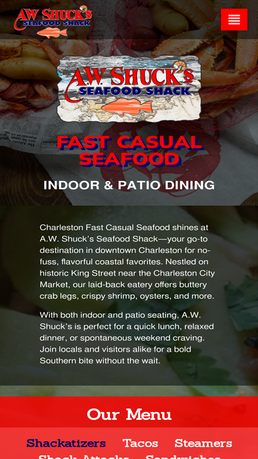 86%a.w. shuck's seafood shack is located in the heart of downtown charleston sc. come enjoy some of the best seafood charleston sc has to offer.