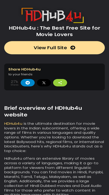 100%Welcome to Official HDHub4u WebSite – Free Download HD Movies & TV Shows on HDHub4u. Enjoy Latest Movies from Bollywood, Hollywood, & South Indian