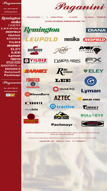 84%importazione e distribuzione remington, marlin, nesika, dakota, bushmaster, dpms, leupold, redfield, diana, barnes, yildiz, kimber, grand power, fx airguns, eley, seek, lee, lyman, forster, kleenbore, break-free, shooter's choice, timney, maglula, kalmizar, pachmayr e altri prestigiosi marchi.
