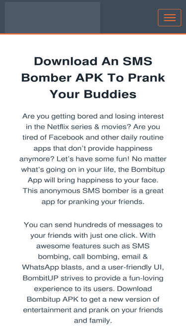 Download BOMBitUP SMS Bomber APK Latest Version [Official] 2024 for free & start pranking your loved ones.