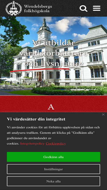 97%Kontakt Kontakta oss Har du några frågor om våra verksamheter, om skolan eller vill göra en bokningsförfrågan, kontakta oss gärna. Se all personal AdressOskar Lundgrens väg 3, 435 35 MÖLNLYCKEWendelsbergs folkhögskolaTfn. 031-338 05 30info@wendelsberg.se