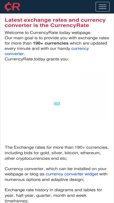 85%Latest exchange rates workaday and helpful currency converter for more than 190+ currencies including gold, silver etc. Exchange rate histories with compare tables.
