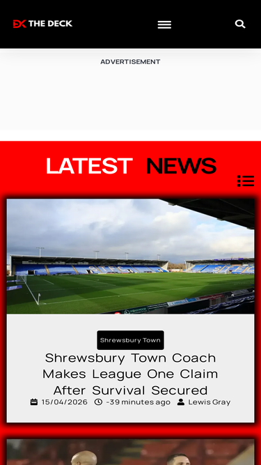74%The Deck is home to five award winning football podcasts including League One Lowdown. As well as the latest football news and stats.