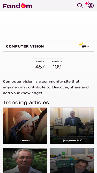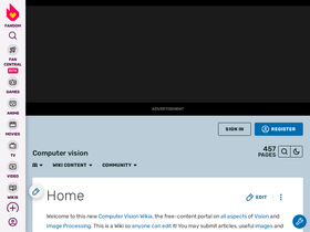 76%Welcome to this new Computer Vision Wikia, the free-content portal on all aspects of Vision and Image Processing. This is a Wiki so anyone can edit it! You may submit articles, useful images and code samples. We began on March 31st 2005 and are currently working on 457 articles. This Wikia has just begun so we need lots of help and lots of work done. Check out this and this, and get editing! Computer Vision News, the online magazine of the Algorithm community: news, research papers, apps...