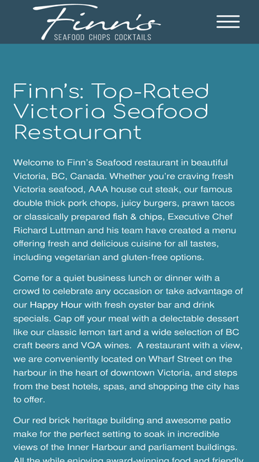 100%At Finn’s in Victoria, Happy Hour is served up twice a day - for pre-dinner and late night crowds, every night of the week! Check out our Happy Hour Menu.