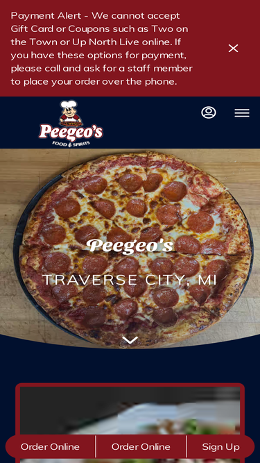 100%Peegeo's in Traverse City, MI. We are a full service restaurant/bar with daily lunch and dinner specials. We have a hometown atmosphere, great for family and friends.