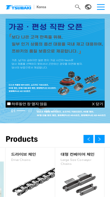 78%일본 쯔바키모토 체인 그룹의 100% 자회사 한국법인. 세계 점유율 No.1의 실적을 자랑하는 산업용 체인 등 각종 동력 전달 기계 부품을 라인업, 취급하고 있습니다.