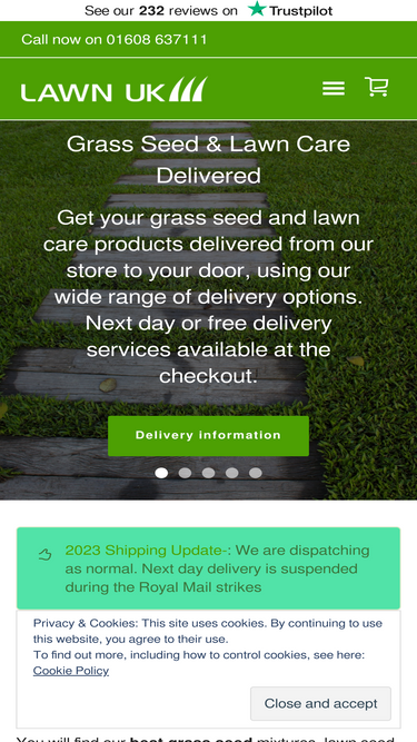 88%Normal dispatch & delivery, including next day Last updated 4th January 2022 We continue to operate safely within our dispatch facilities. Customer service will still be provided online by email. DHL, Royal Mail and Amazon Logistics are all operating as normal. Placed an order and waiting for delivery? Please contact us by email – seed@lawnuk.com and we will update you […]