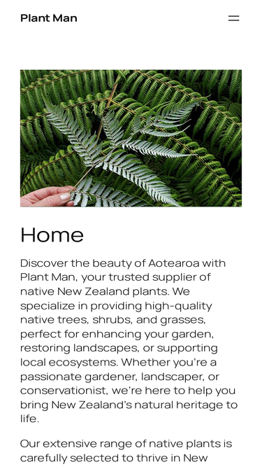 100%Discover the beauty of Aotearoa with Plant Man, your trusted supplier of native New Zealand plants. We specialize in providing high-quality native trees, shrubs, and grasses, perfect for enhancing your garden, restoring landscapes, or supporting local ecosystems. Whether you’re a passionate gardener, landscaper, or conservationist, we’re here to help you bring New Zealand’s natural heritage