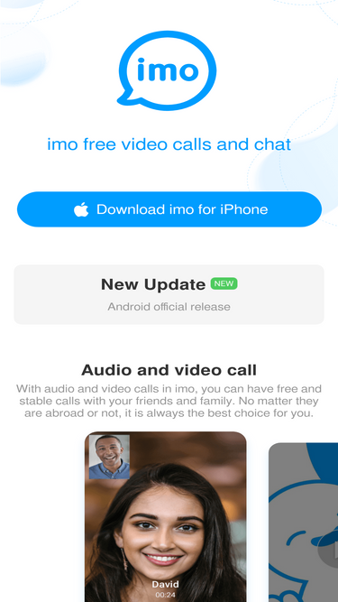 72%Stay connected with family and friends using imo's free video calling app. Enjoy free video chats, 1-on-1 calls, audio calls, and international calls!
