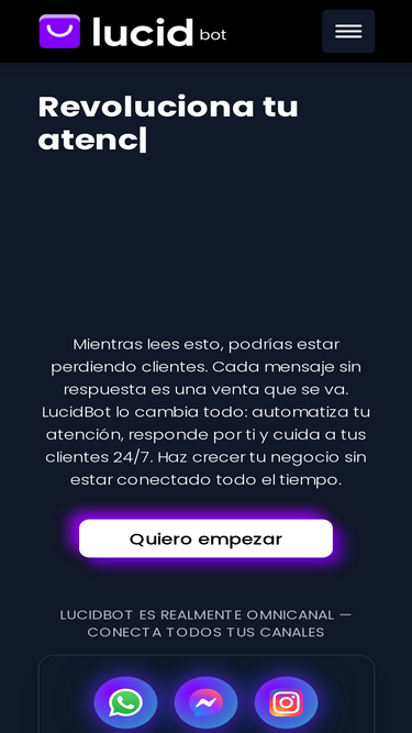 69%LucidBot automatiza tu atención y ventas con inteligencia artificial. Conecta todos tus canales como WhatsApp, Instagram y más.