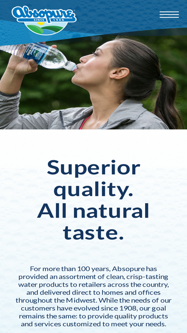 95%For over 100 years, Absopure has provided crisp-tasting water products to retailers nationally and delivered directly to homes and offices in the Midwest.