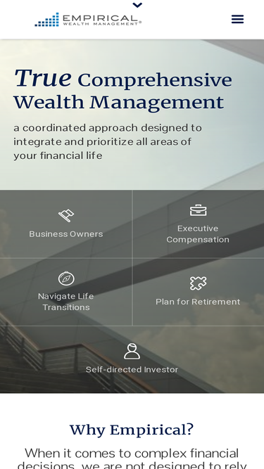 100%Empirical Wealth Management provides holistic financial planning, investing, tax strategy, and estate services to create confidence, growth, and peace of mind.