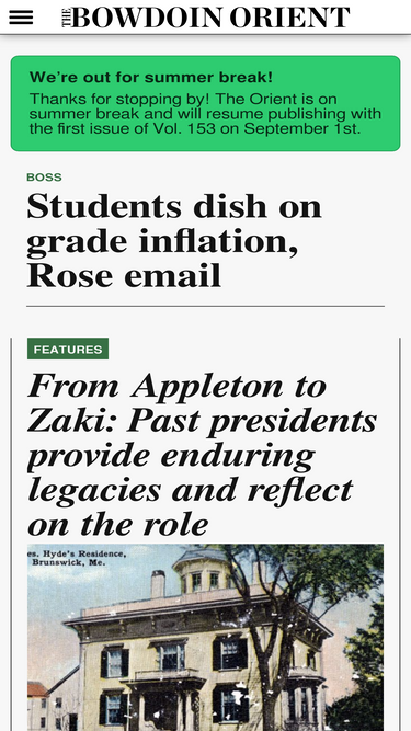 92%In the early hours of a typical Friday morning, the Orient staff emails PDF files of the paper to a Brunswick printer. A few hours later, printed newspapers appear in buildings across campus. In between, the intricate art of newspaper printing unfolds just a few miles from Bowdoin. Dick Lancaster, sales manager at Alliance Press, has been in the newspaper-printing business for nearly 30 years. His company was already printing weekly editions of the Orient when he joined in the mid-1980s.The physical printing process relies on both old and new technology. Once the Orient sends completed designs to Alliance Press, pre-press employees check that the files are sized and formatted properly. “No RGB images. [We use] CMYK,” Lancaster said. “[Then] they’ll paginate it and put it in the correct order for sixteen pages.”Order is especially important because the printing press is configured to only print certain pages in color. All images that appear in the Orient are combinations of just a few colors of ink. “You have four different inkwells. You have yellow, magenta, black and cyan,” Lancaster said. ”You [put] your colors all on [pages] one, eight, nine and 16. If you wanted more color, it would go on two, seven, 10 and 15.” Once the employees have ensured that the paper is in proper order, they use a special printer to burn the design directly onto metal plates. They then bend the plates to fit into the printing press.When it’s finally time to print the paper, an operator switches the printing press on. Sheets of newsprint pass through the machine, picking up ink as they come into contact with the metal plates. The machine then cuts and folds the sheets so that they come out the other end looking like typical newspapers. Alliance Press has multiple printing presses, so they can print up to three publications simultaneously. The quickest of these presses prints 15,000 papers per hour. For a publication like the Orient, which prints roughly 1,600 copi