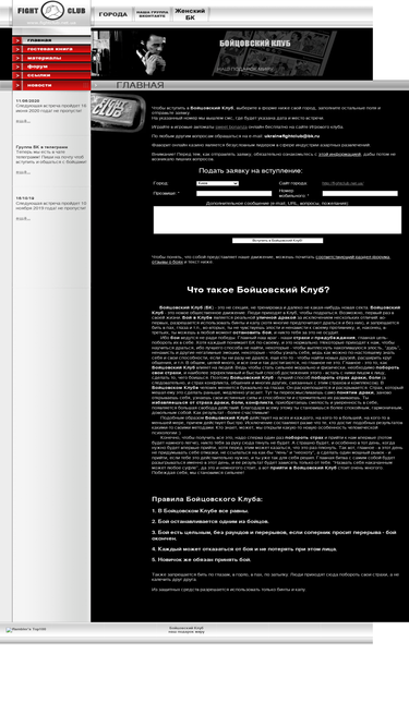 98%бойцовский клуб в киеве и городах украины: движение по мотивам книги чака паланика 'бойцовский клуб'. суть: бой как средство избавиться от страха драки, побороть страх боли, стать сильнее морально и физически.