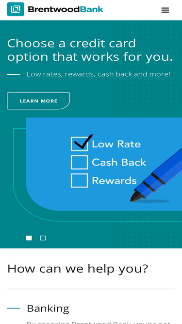 100%exploring banks in pittsburgh? look no further than brentwood bank. with 100 years in business, we're a leader among community banks in pittsburgh, pa. how can we help you meet your financial goals?