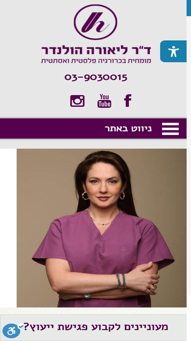 82%ד"ר ליאורה הולנדר הינה מומחית לכירורגיה פלסטית ואסטתית, ד"ר הולנדר הינה בעלת ניסיון עשיר בכל סוגי הניתוחים הפלסטיים האסתטיים, למידע נוסף כנסו לאתר