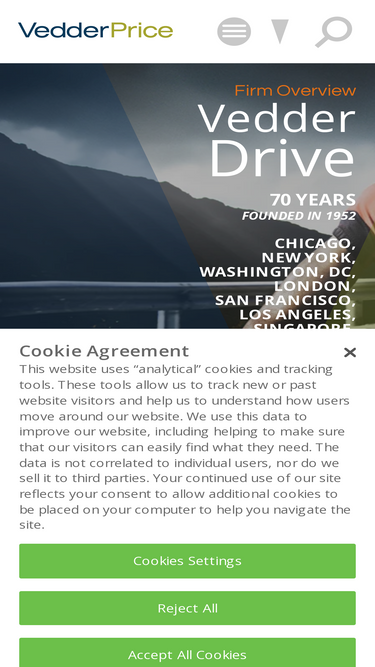 Vedder is an international business-focused law firm serving sophisticated clients of all sizes and industries from offices across the U.S. and in the UK and Asia.