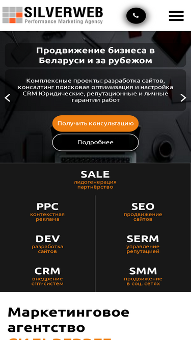 88%Маркетинговые услуги SILVERWEB. Создание сайтов, PPC, SEO, SMM, лидогенерация. Комплексный интернет-маркетин в Минске.