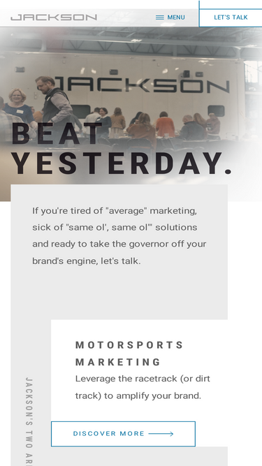 100%JACKSON is a fully integrated marketing agency that produces uncommon results for brands through two areas of expertise: brand marketing and motorsports marketing.