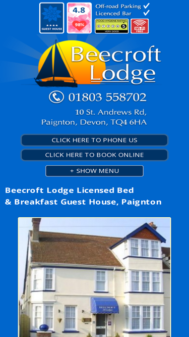 62%beecroft lodge licensed bed & breakfast guest house, paignton we welcome you to relax in our 4 star / silver award 7-bedroom licensed guest house. situated in a perfect convenient but quiet location. all bedrooms are en-suite. we… read on…