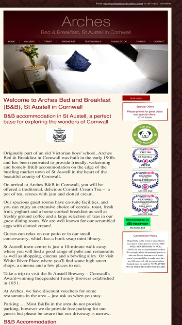 61%arches bed and breakfast b&b accommodation in st austell, a perfect base for exploring the wonders of cornwall. bed and breakfast cornwall. the b&b is also pet friendly.
