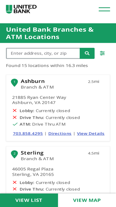 73%find united bank branches & atms across 8 states and d.c. for personal and business banking, financial planning, and digital banking solutions.