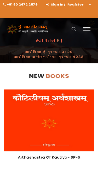91%e-bharatisampat is an online digital library of free content textual sources in samskrit, jointly operated by samskrita bharati and samskrit promotion foundation. this project aims to host all forms of free samskrit texts and translations. the project officially began in may 2017 under the name project digitized samskrit corpus. the name e-bharatisampat was adopted later that year and it received its own domain name six months later. the project holds works that are either in the public domain or freely licensed; professionally published works or historical source documents and not vanity products; those that are verifiable. verification was initially made offline, or with the help of other reliable digital libraries.