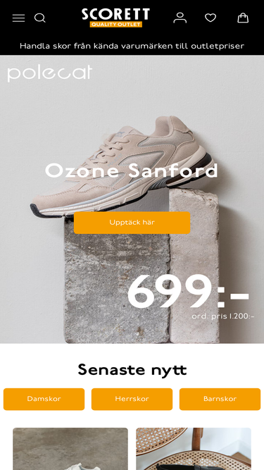 86%Upptäck ett stort utbud av damskor på Scorett Outlet. Hitta trendiga och bekväma skor från populära varumärken till outletpriser. Fynda sneakers, boots, finskor och mycket mer – alla med fokus på stil och komfort.