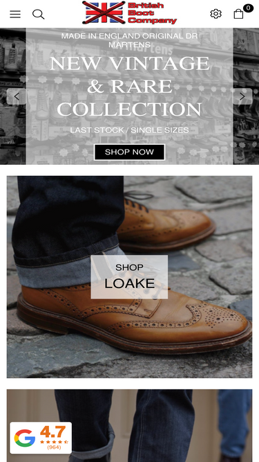 84%With over 400 styles of Solovairs, Grinders, Loakes, original George Cox Creepers, Dr Martens and more, we have an unrivalled collection of boots, shoes and creepers. Many of the styles we carry are hand made here in the UK for our shop only.