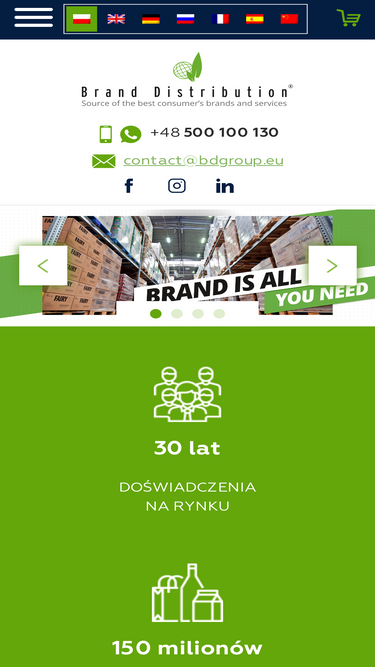 100%Brand Distribution Group posiada kilkudziesięcioletnie doświadczenie w imporcie i dystrybucji towarów FMCG. Jesteśmy aktywni na 97 rynkach na całym świecie. Współpracujemy zarówno z międzynarodowymi sieciami handlowymi, lokalnymi dystrybutorami, jak i mniejszymi podmiotami, które oferują szeroką gamę produktów konsumentom nawet w najdalszych zakątkach globu. Międzynarodowy zasięg naszej działalności pozwala na zaoferowanie naszym Partnerom atrakcyjnych, prawdziwie konkurencyjnych …