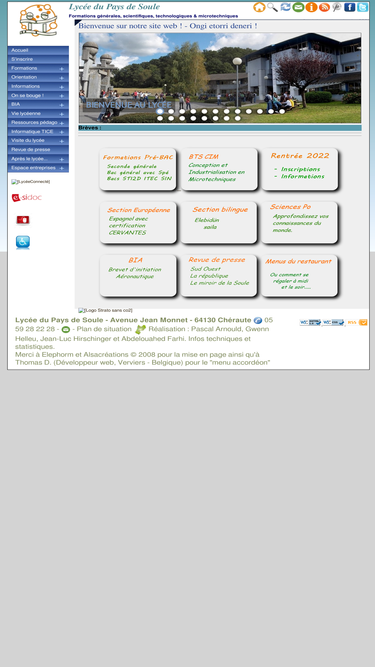 le lycée du pays de soule (présentation, infos pratiques, dernières nouvelles), les filières et orientations proposées, les résultats des examens, les microtechniques, les offres d'emplois, les poursuites d'étude, la pédagogie et la rubrique profs-élèves, les clubs, la formation continue, la zap oloron, les sites à visiter...