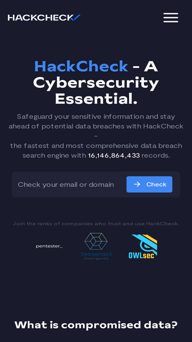 97%HackCheck, a data breach search engine. Safeguard your valuable data from data breaches. Protect your digital identity with HackCheck!