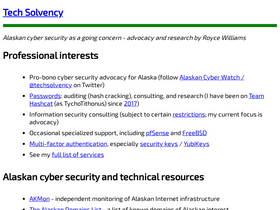 84%alaskan cyber security advocacy and news (as alaskan cyber watch); password research; tls; ntp; site checks and security resources.