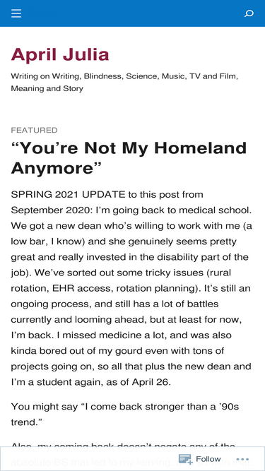 100%writing on writing, blindness, science, music, tv and film, meaning and story