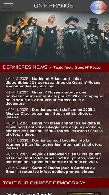 64%guns n' roses france : des news tous les jours, photos inedites, interviews et articles sur le groupe guns n' roses traduits en francais, telechargements audio et video...