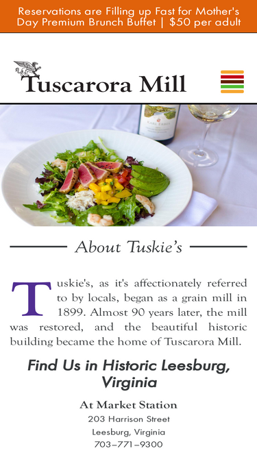 100%we are passionate about great food and service. located in leesburg, virginia, tuscarora mill is an independent, locally owned restaurant, casual cafe and bar.