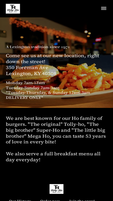 78%Tolly Ho a Lexington tradition since 1971! Serving the best burgers in lexington, beers and all day everyday breakfast!