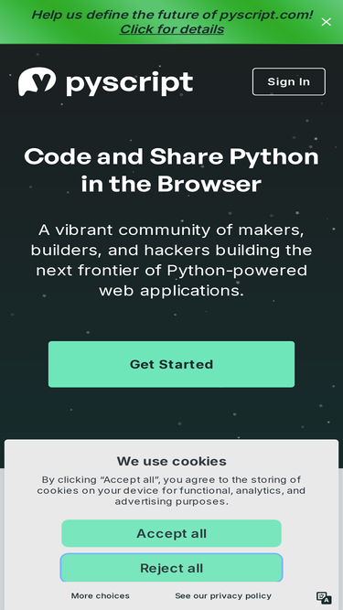 code and share python in the browser. a vibrant community of makers, builders, and hackers building the next frontier of python-powered web applications.