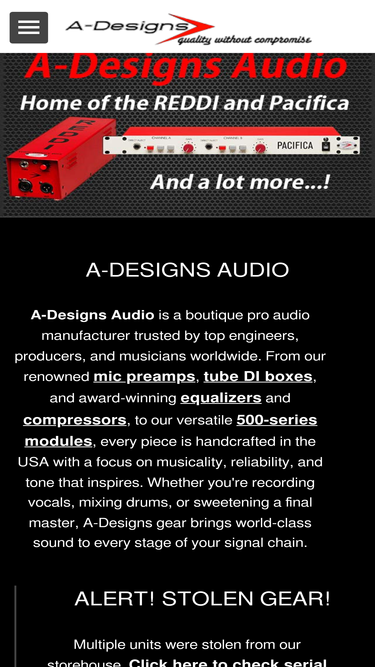 100%high-end analog preamps, compressors, di units, audio summing, 500-series boxes and more. get the analog sound that your digital recordings are missing..