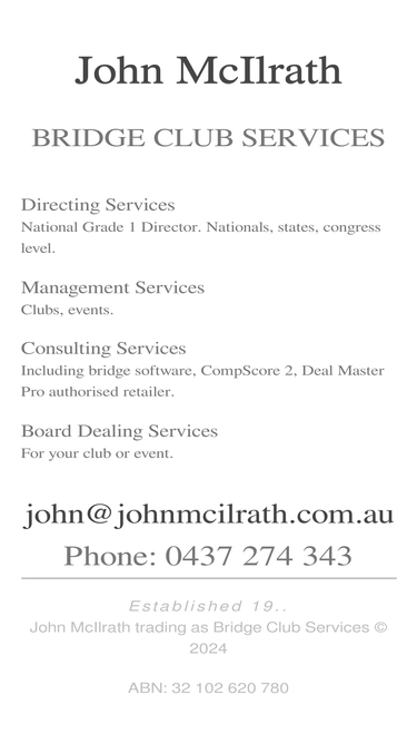 100%An outline of the House of Cards Bridge clubs' timetable.