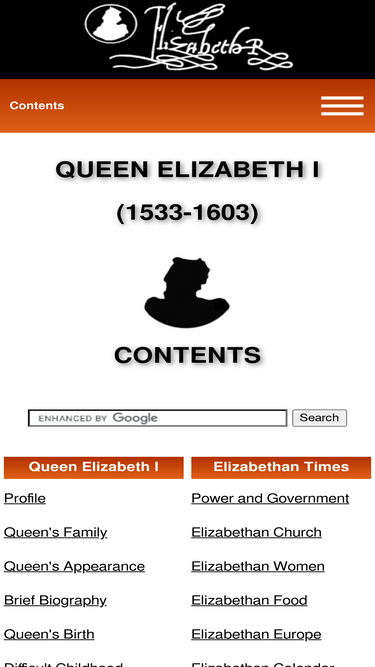 71%website about the life and reign of queen elizabeth i (1533-1603), tudor queen of england: biography, facts, books, links, armada, tudor history, more.