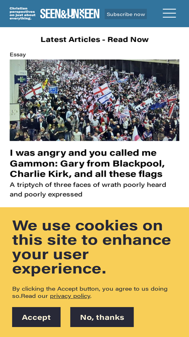 100%Seen & Unseen. Discover more of the seen and unseen. Discover a world that is greater, more full of meaning, and sense, than they might ever be imagined. Articles, essays, explainers and podcasts for thoughtful minds. Christian perspectives on just about everything.